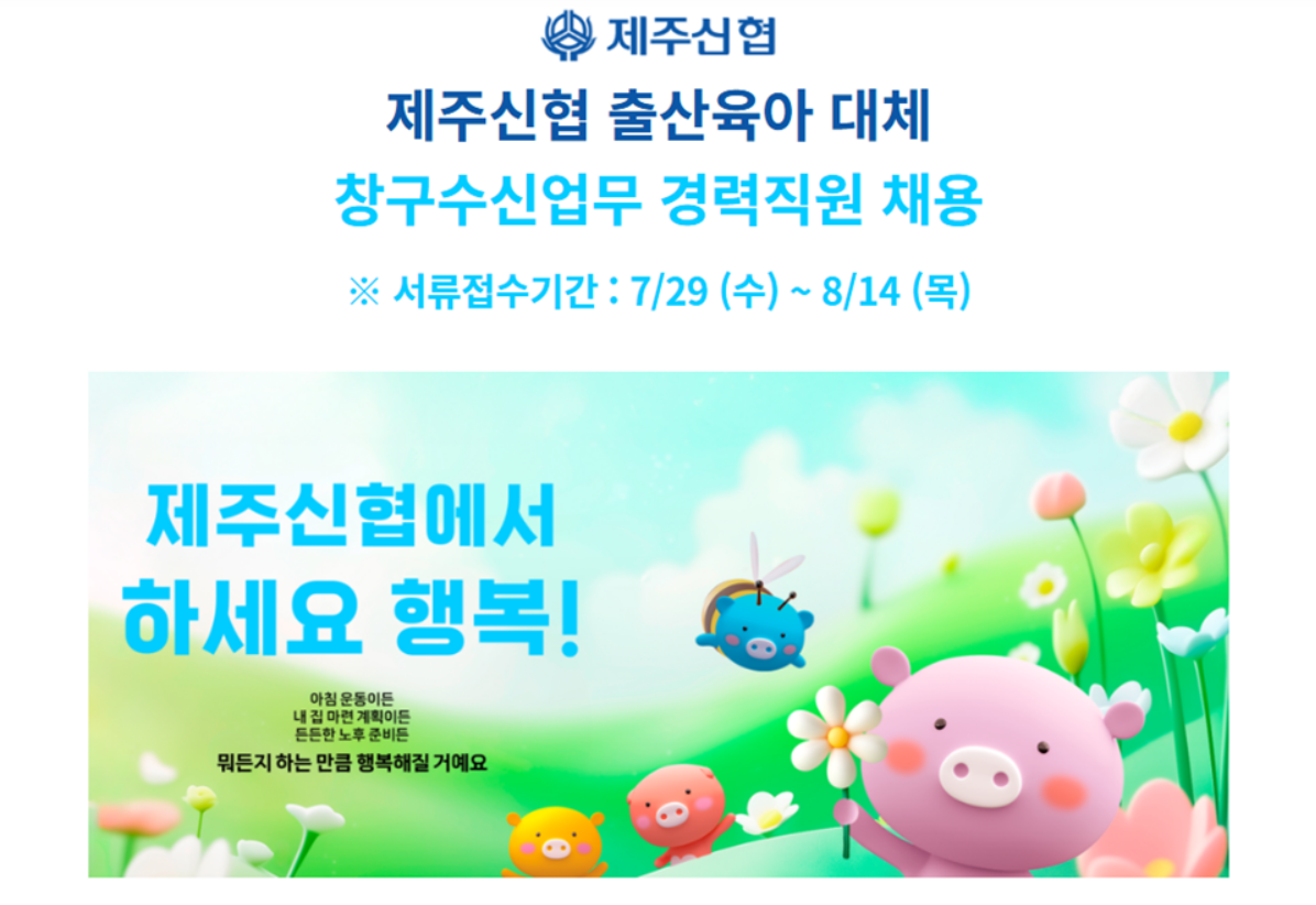 공지제주신협 출산·육아휴직 대체 경력직원 채용 (마감)